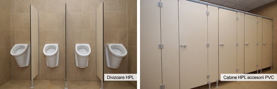 Oferim și soluții moderne din HPL pentru compartimentări sanitare. Acestea vor rezista la umezeală, agenți microbiologici, zgârieturi și vor necesita o întreținere minimă.